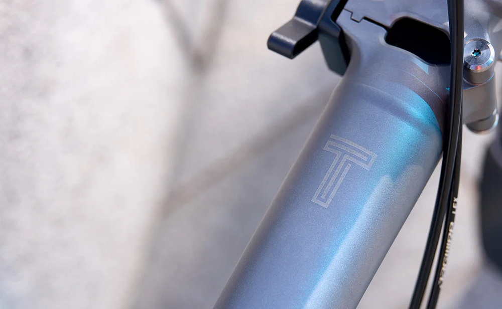 Headset: Grade 9 titanium diameter tubes withintegrated headset and spring loaded steerer catch hinge