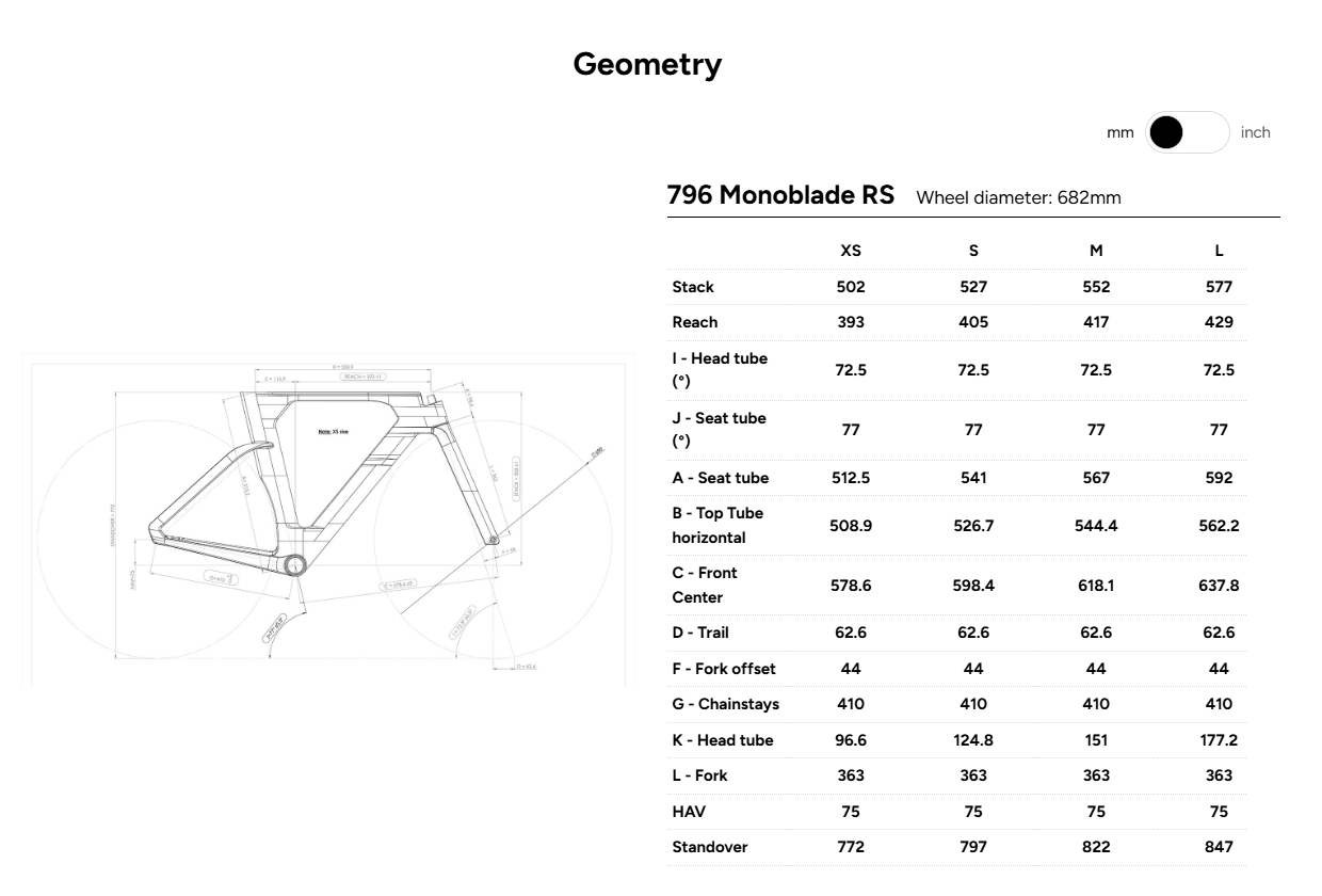 Look 796 Monoblade RS Triathlon Disc Frameset