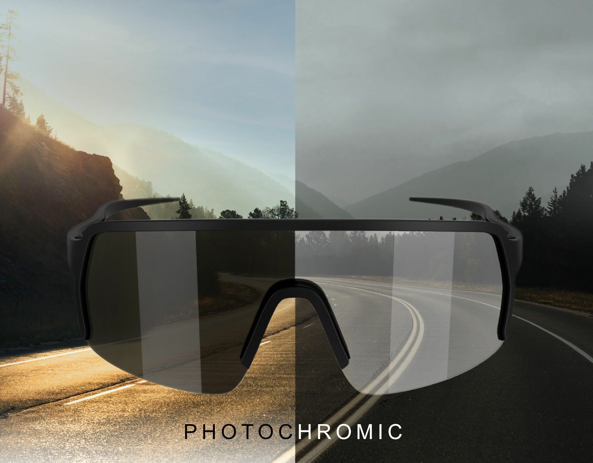Our The One photochromic polarized lenses get activated by UV rays, they adjust their tint to the ambient light, so you can enjoy your ride no matter the weather!