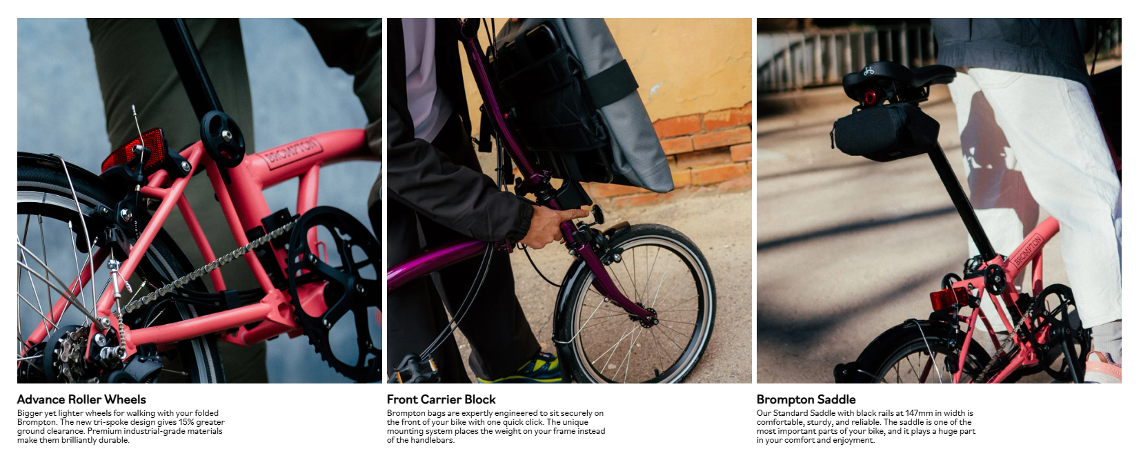 個性化一直是Brompton的核心,C Line 12速延續了這一傳統,推出了三種引人注目的全新顏色:大膽的Flamingo Pink、精緻的Amethyst Lacquer和經典的Turkish Green。其獨特的Brompton Luggage System確保了穩定的騎行,即使攜帶重物,也能通過將重量放在車架上而不是以把手來保持平衡。無論是通勤、探險還是休閒騎行,C Line 12速都能滿足用家。