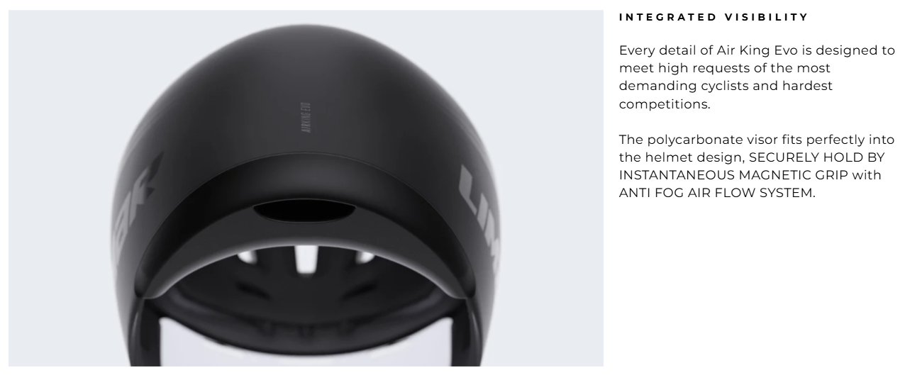 新款Air King Evo誕生於Limar團隊與Astana車隊的工程師和技術人員的結合,他們認識到進化永無止境,每個限制都可以被突破。