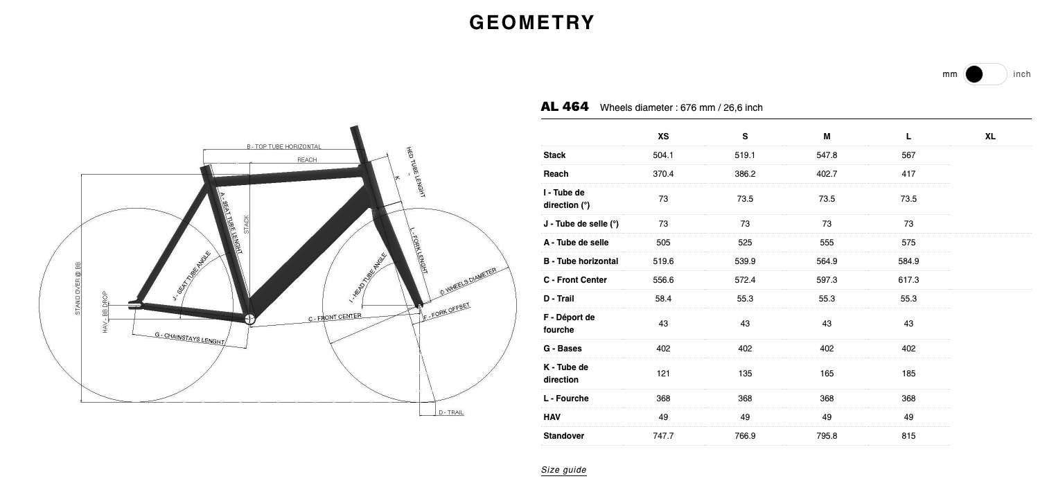 I - Tube de direction (°) 73 73.5 73.5 73.5