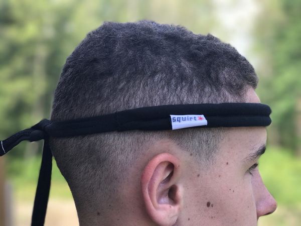 說明:係緊頭部,在背部打一個結,舒緩緊張感。 戴上頭盔時,應在頭盔綁帶的外部綁好防汗帶,以加強排水。